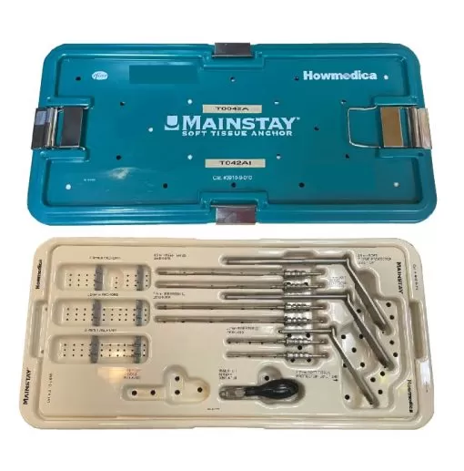 The Howmedica Mainstayโข Soft Tissue Anchor is a titanium alloy self-drilling, self-tapping